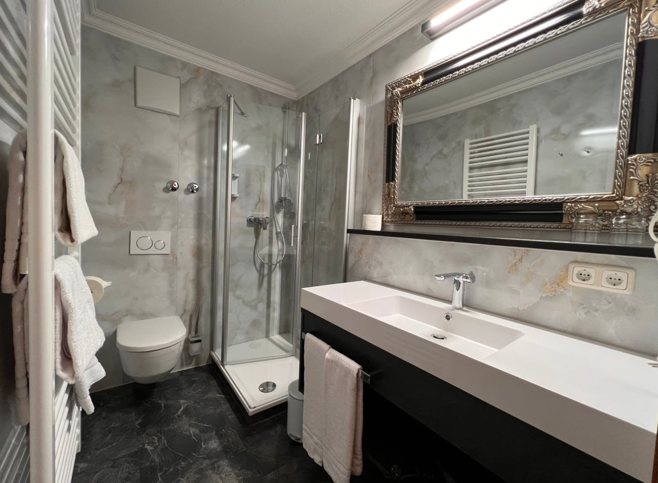 In der hoteleigenen Tiefgarage können Sie gegen eine geringe Gebühr von 3,50 € / Tag sicher parken. Dieser Stellplatz wird speziell auf Wunsch für Sie reserviert. Ein Lift von der Tiefgarage führt Sie direkt auf die Etage zum Appartement.